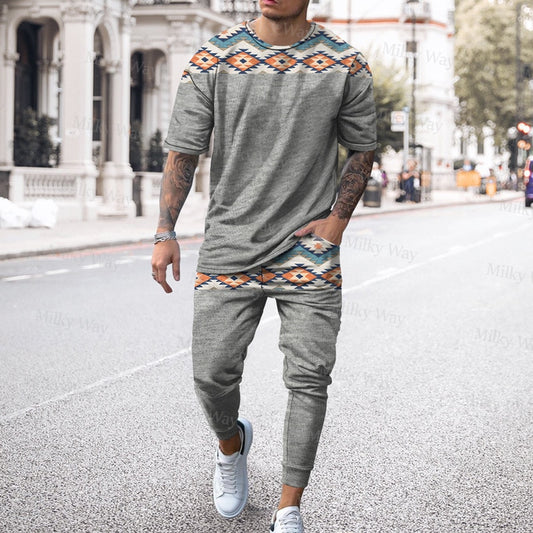 Men Dashiki Long Sleeve Shirt White Trouser Set Mens 2 Pieces Outfit Suit Traditional Male Clothes T-shirt Pant Suits For Men